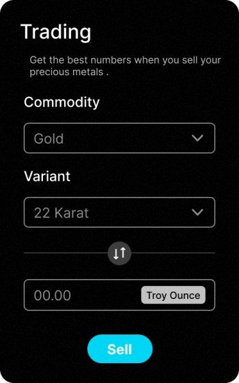 Navigate to the "Buy & Sell" section after logging in. To buy, select the commodity, specify the quantity, and confirm the payment method. To sell, choose the commodity from your portfolio, set your price or accept the market rate, and confirm the sale. Transactions are processed instantly, with real-time market data to guide your decisions.